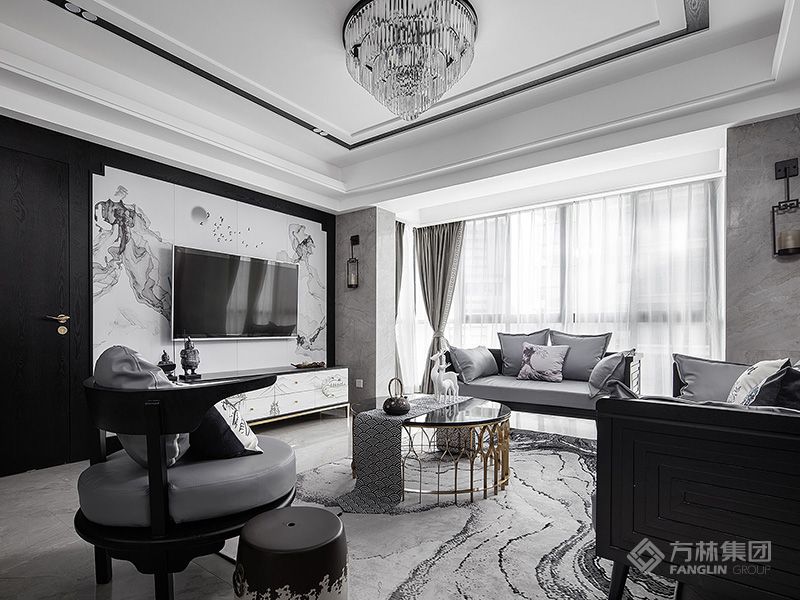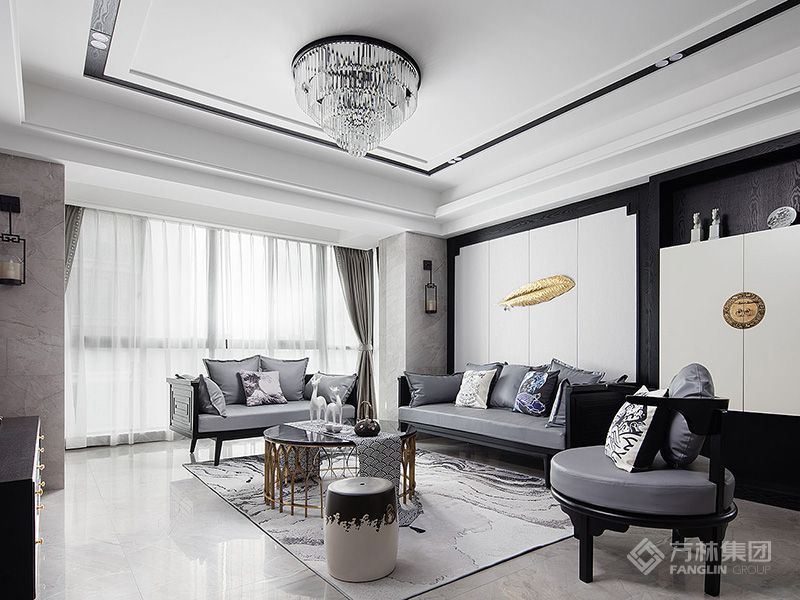 在黑白灰色调的现代家居空间,融入传统儒雅装饰元素,打造沉静雅致的新中式风格生活空间。