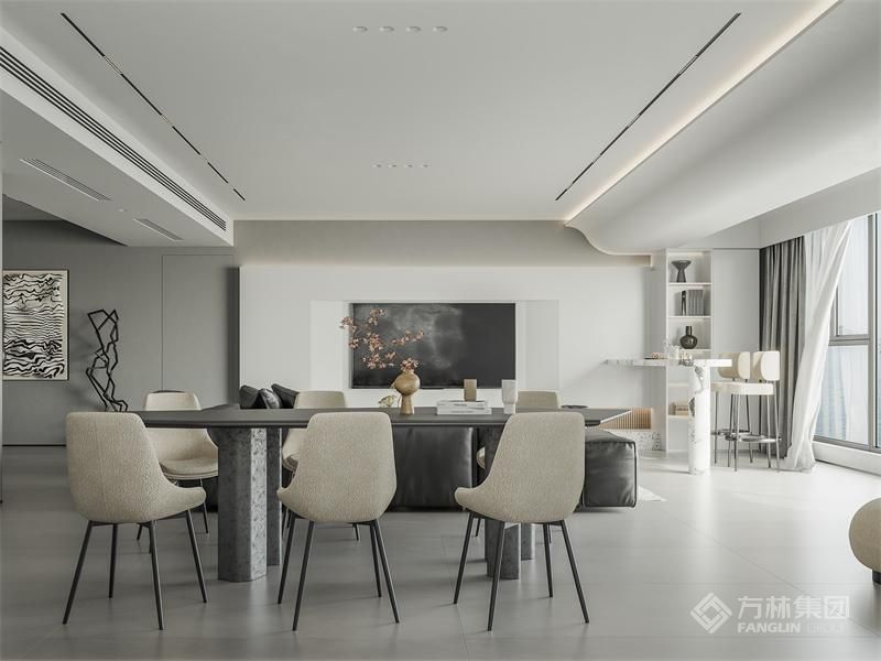 设计师依托简洁明快的现代风格,以银檀优美含蓄的线条装饰玄关及各种景点,自然而然地将生活态度与设计语言融入空间规划。