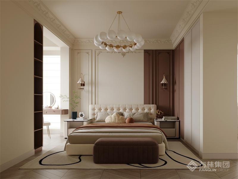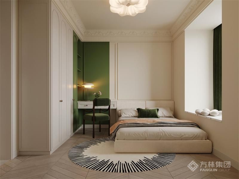 "经典户型,将餐厅厨房连为一体,暖色调撞色墨绿,墙顶造型以经典法式为主,突显法式独有的浪漫气息。 "