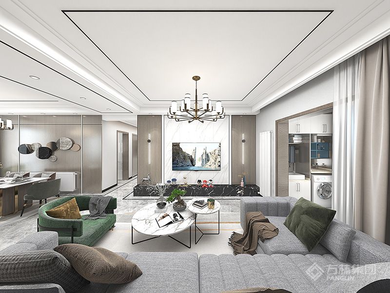 用线条凸显层次感、用木饰面增添立体感,用黑白灰软装表达艺术生活情感。