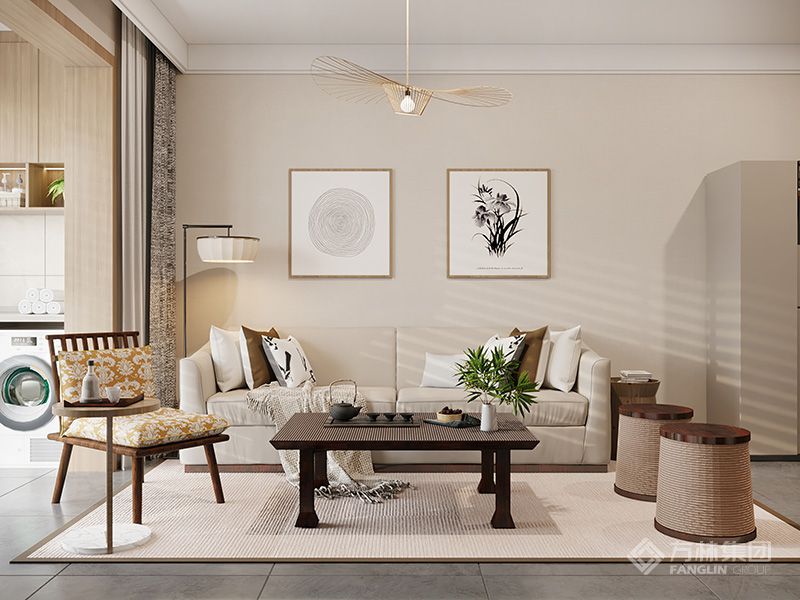 质朴温暖的大地色如初升的阳光,不过分绚丽温暖宜人,一步一光景,在完全开放的格局里铺垫着生机活力的韵调,不多不少,营造出舒服的空间氛围。