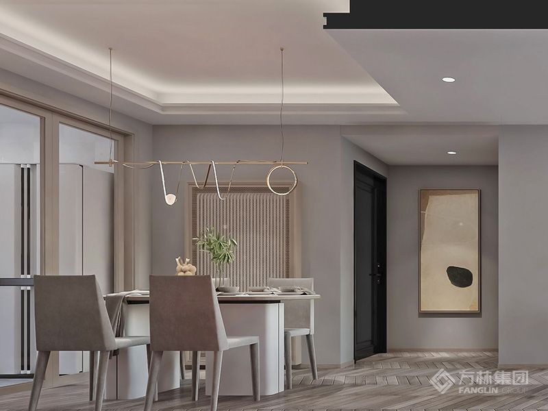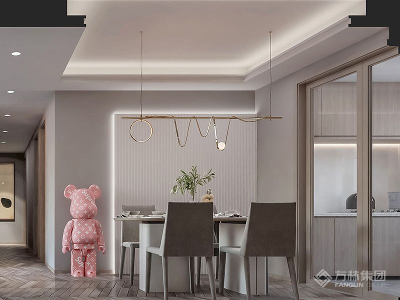 房子是小两口为新婚准备,深圳科技企业骨干。妻子对居住空间色彩有着一定的要求,要求空间动线流畅色彩具有活力。设计时整体空间简洁,色彩多用莫兰迪经典配色。丈夫因经常在家加班,要求房子配色安静装饰简洁。设计师与业主经过多次沟通最终客厅采用中性色调,卧室书房等采用冷色调,长辈房夫妻一致尊重长辈意见。设计致力于一家三代生活适用的居家空间。