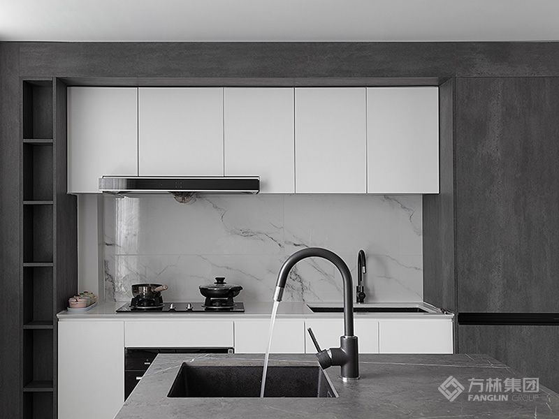 将公共区域打开,采用开放布局,让室内各个功能区域之间独立、关联,动线上也更流畅、舒适,增强家人之间的互动交流。弧线元素+灰白的色调,营造舒适、惬意的空间。