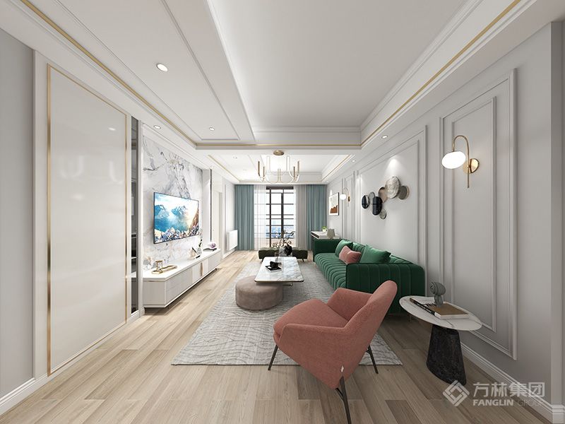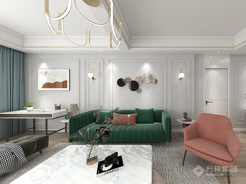 本户型为旧房改造,整体风格未现代轻奢美式风格。将原来的客厅和次卧对调,让客餐厅形成在一条线上,让动线更加流畅。