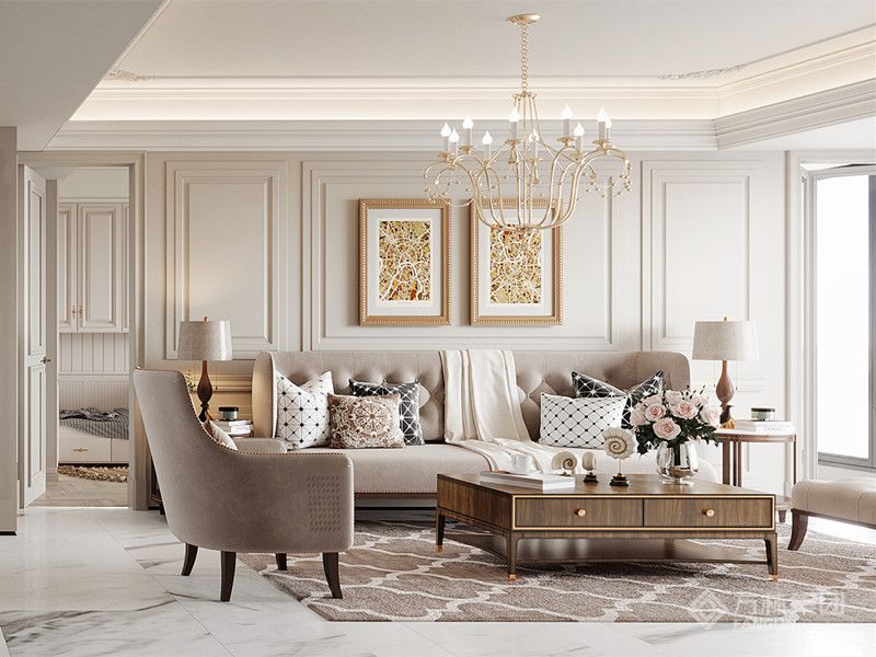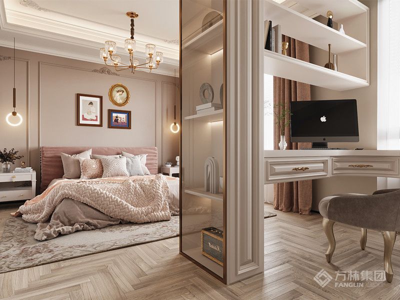 结合客户三口之家的现实情况,摒弃了原有的四房结构,只保留主卧和女儿房两个套间。配以美式轻奢的古典雅致风格,使得生活中每一个举手投足的瞬间都能体现房子主人高贵、典雅的气质。