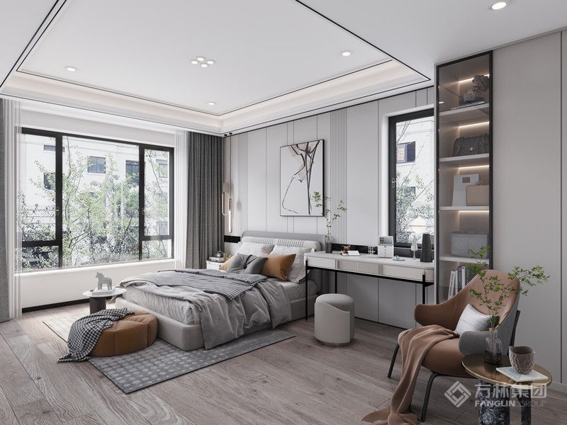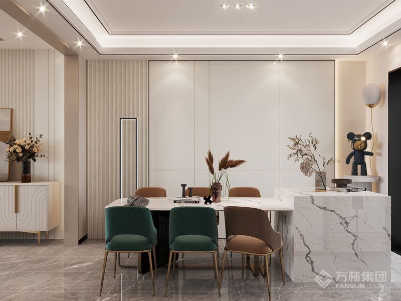 简洁、舒适,没有多余的装饰,线条简单,室内空间大方。简约风格的设计不是缺乏设计要素,而是一种更高层次的境界。满足功能需求的前提下,将空间、人及物品进行精致且合理的组合,描绘出简洁素雅的空间效果。米色及暖灰色的运用,使得空间看起来既简洁又富有温馨感。少量金属材质的运用,在保留空间简洁干净的同时,又展现出业主轻奢且高贵的生活品味。
