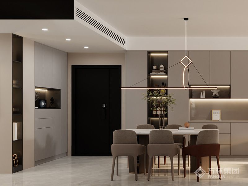 业主一对年轻夫妻,都是高校老师,留学回来,很喜欢国外简约大气的感觉,又想不失局部的设计元素,整个空间的用色采用了中性搭配偏暖的色调,让忙碌一天的他们回家有一种格外的舒适感 。