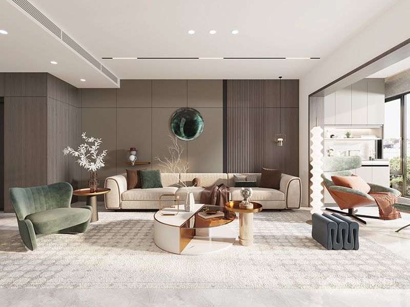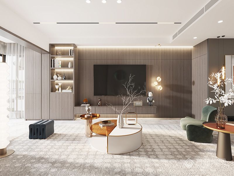 业主偏爱深色的质感,设计要求大气简洁而不失现代感,客餐厅选用了高级感强的木饰面加上冷色系的软装,让整体空间感体现一种高级的质感。