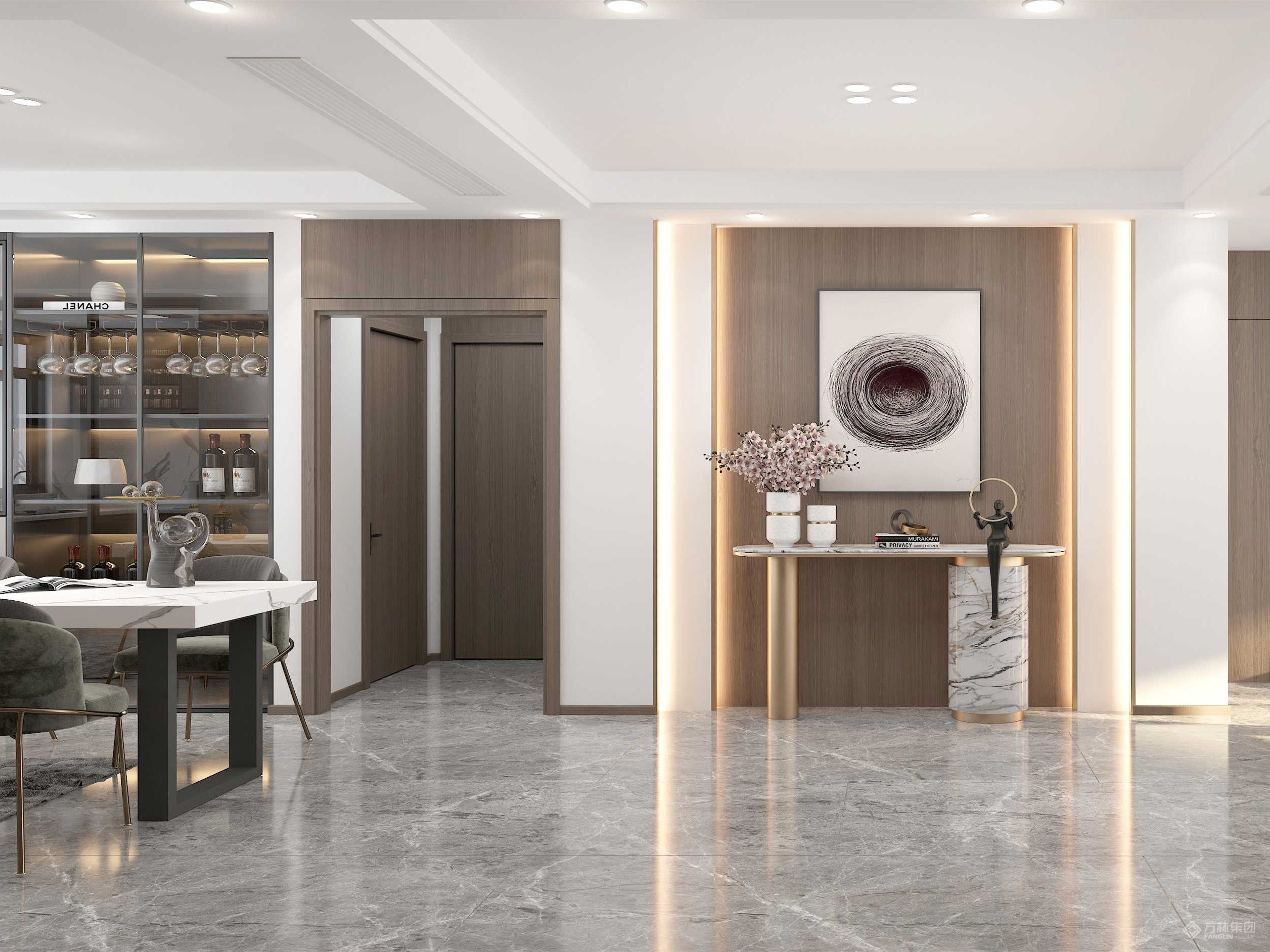 "现代是从有装修理念后一直沿古至今都流行的设计风格,此项目客户想用简单的方式营造大气的空间但要有“家”的感觉。方案设计上没有用过多的色彩,以简单自然的颜色来划分空间与局域,整体大多使用开放式的设计,整合生活空间,拓展空间视觉感。"