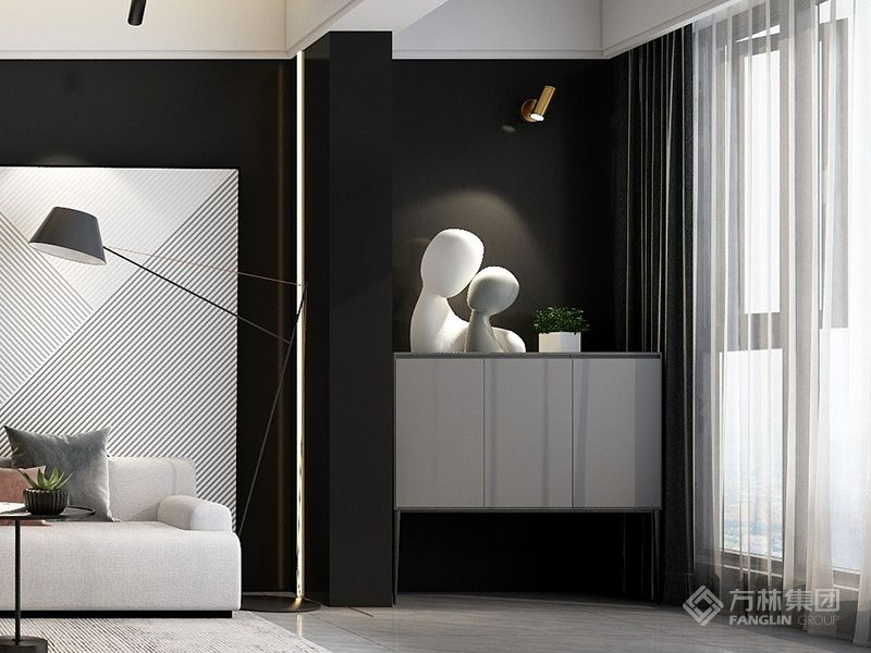 黑色为主色调的案子,如何消除黑色的压抑感,是留给设计师的难题。灯光的运用,房间的边界融入了阴影。 家具明亮而饱和的色彩突出了空间。 聚光灯突出颜色和形状。 光影对比、饱和色彩和黑色营造出戏剧感。