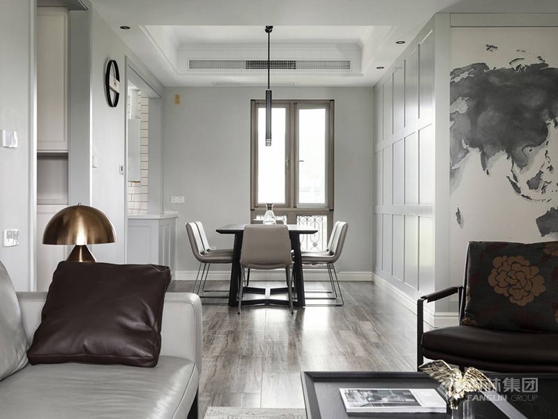 主人喜爱沉稳舒适的现代美式空间。以米色与咖色为基调,通过加入具有层次感的蓝色与绿色来营造出冷静而又具有生气的居住氛围。