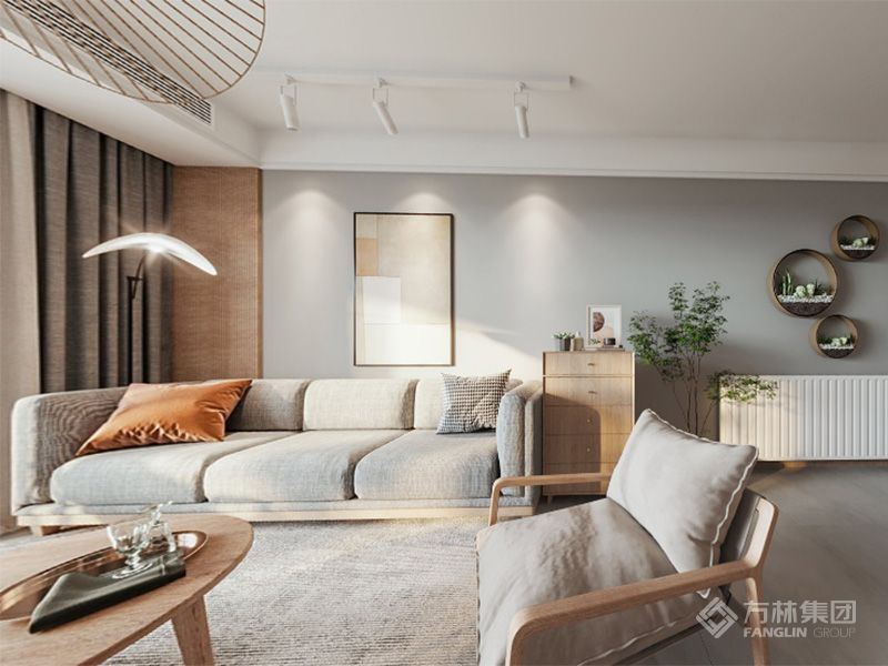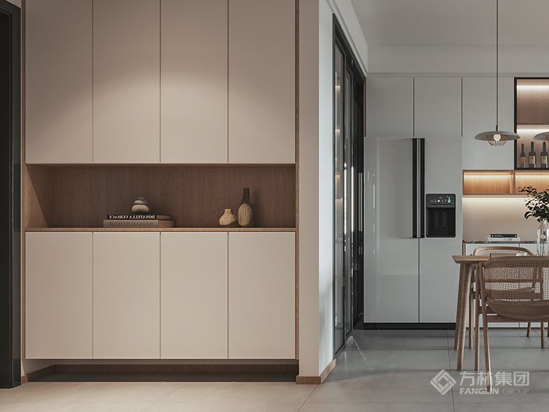 用有限空间,做无限设计,成就梦想之家。整个空间明亮宽敞,温柔的木质家具与灰白组合柜相互渗透,增加了空间层次感和立体感,温馨而又舒适。