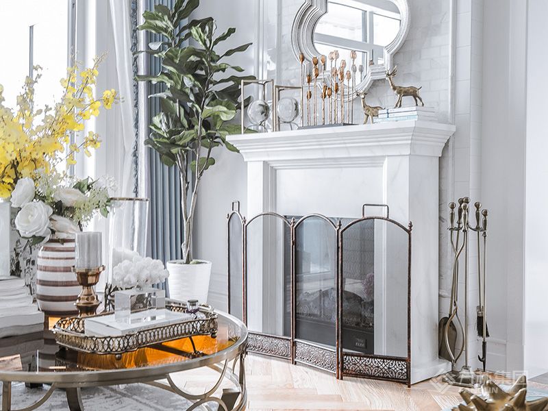 电视背景没有采用传统的电视背景,利用壁炉作为核心点,打造温度感,同时呈现高雅质感。